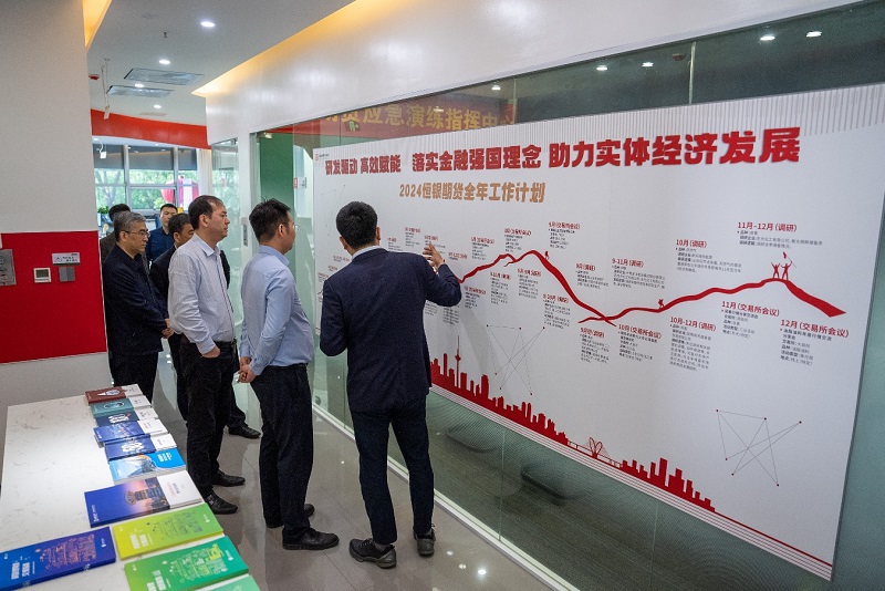 4月17日下午,河北省國資委黨委委員、副主任徐科華到國富投資集團所屬恒銀期貨有限公司調(diào)研指導工作,了解了恒銀公司的整體情況,參觀了恒銀公司的直播間、信息技術(shù)部、黨建長廊、期貨投教基地等部門,重點了解了雞蛋、生豬等與國計民生息息相關(guān)的期貨產(chǎn)品的區(qū)間走勢,并對期貨交割庫在河北省的具體分布和發(fā)揮的作用等情況進行了深入交流溝通。