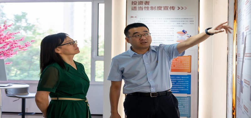 活動伊始,恒銀期貨總經(jīng)理湯志江帶領(lǐng)和講解下,河北經(jīng)貿(mào)大學(xué)副校長杜紅梅、金融學(xué)院黨委書記魏健、金融學(xué)院院長楊雪美、金融學(xué)院黨委副書記王薇、金融學(xué)院副院長竇麗琛、金融學(xué)院就業(yè)工作負(fù)責(zé)人高鵬飛等一行領(lǐng)導(dǎo)參觀了恒銀期貨總部的辦公區(qū)和恒銀期貨投資者教育基地,深入了解了公司的組織架構(gòu)、業(yè)務(wù)模式、企業(yè)文化、發(fā)展戰(zhàn)略及黨建扶貧等工作。通過參觀,經(jīng)貿(mào)領(lǐng)導(dǎo)對于恒銀期貨的辦公環(huán)境、業(yè)務(wù)模式和發(fā)展前景給予了高度評價(jià)。