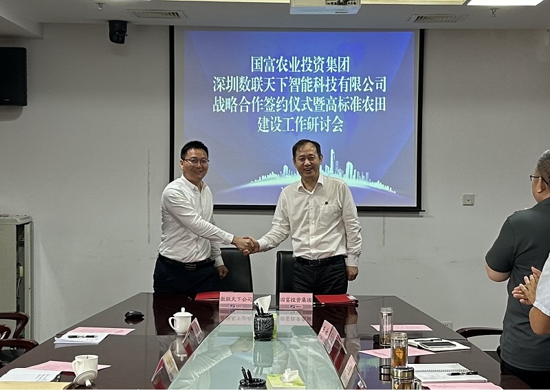 7月2日,國富農(nóng)業(yè)投資集團與深圳數(shù)聯(lián)天下智能科技有限公司簽訂戰(zhàn)略合作協(xié)議,為國富農(nóng)業(yè)投資集團加快培育農(nóng)業(yè)新質(zhì)生產(chǎn)力、打造省內(nèi)一流高標(biāo)準(zhǔn)農(nóng)田建設(shè)項目注入科技新活力。國富農(nóng)業(yè)投資集團黨委副書記、副董事長、總經(jīng)理張立忠,集團黨委常委、常務(wù)副總經(jīng)理馬國棟,集團黨委委員、副總經(jīng)理李其強,及相關(guān)業(yè)務(wù)骨干同數(shù)聯(lián)天下副總裁鄧才良一行進(jìn)行工作研討并見證簽約儀式。