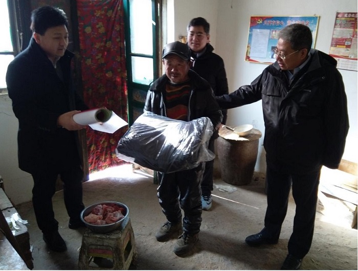 2020年1月8日,國(guó)富投資集團(tuán)黨委副書記韓繼普、副總經(jīng)理邸智彬帶領(lǐng)黨員志愿者,驅(qū)車兩個(gè)多小時(shí),來(lái)到保定市唐縣北店頭鄉(xiāng)西同龍村,開(kāi)展春節(jié)前夕送溫暖活動(dòng),將暖暖情誼和深深祝福送給貧困戶。